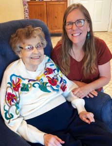 I had met Whitney Myers at a book club meeting, and was immediately drawn to her bright personality and her passion for spending time with older people. When she described her new video business, Sacred Stories, I thought how wonderful it would be to have my mom‘s life story chronicled on film, with Whitney behind the camera. I approached my siblings about it, and they all thought it was a great idea – except they were certain we could do it ourselves. We would write our own questions! We’d figure out how to edit iPhone videos! We would have the grandkids interview Great-Grandma! Lots of ideas, and no forward motion.